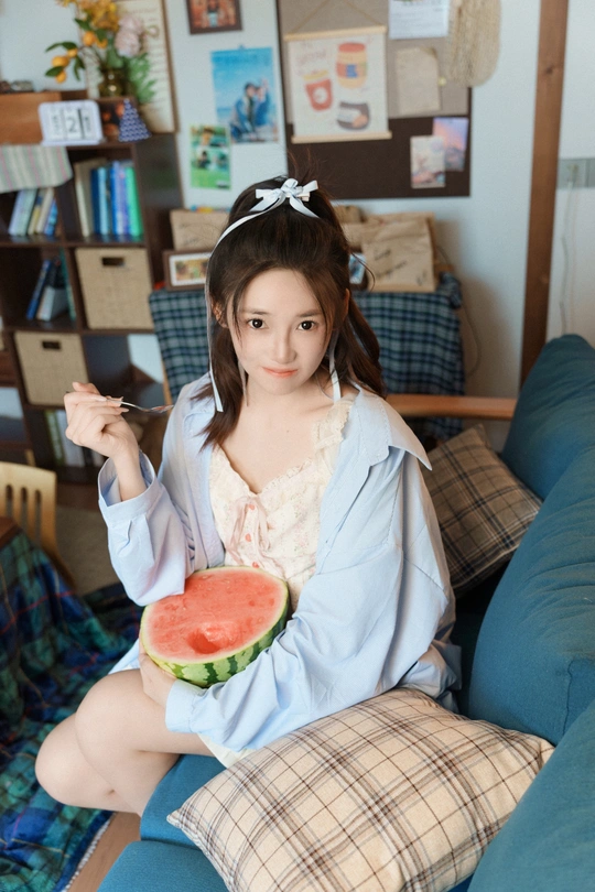 夏天、西瓜和甜妹,组合在一起,就是一幅充满诗意和美好的画卷。在这个快节奏的世界,我们常常奔波忙碌,忘记了身边美好。而这一刻,让我们停下匆忙的脚步,和甜妹一起享受夏日清凉时光。