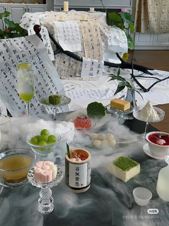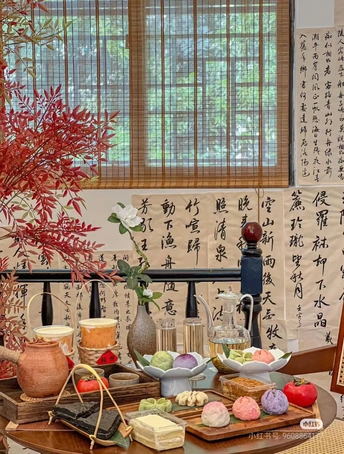 惬意的氛围,精致美观的下午茶,颇有国风韵味