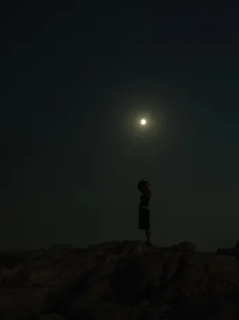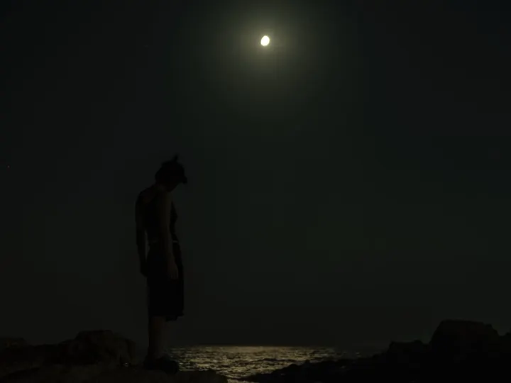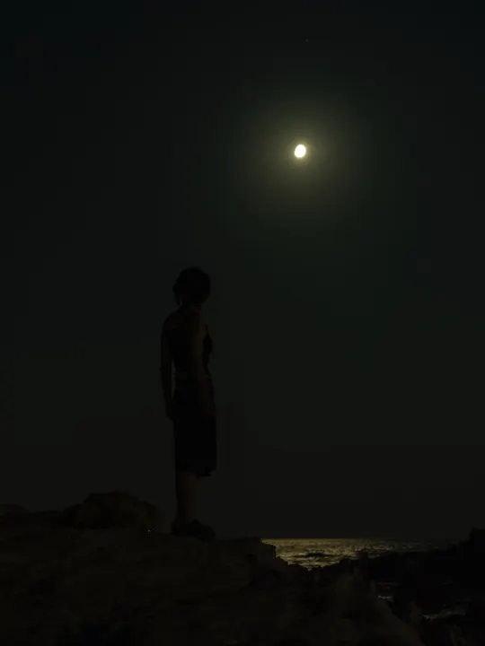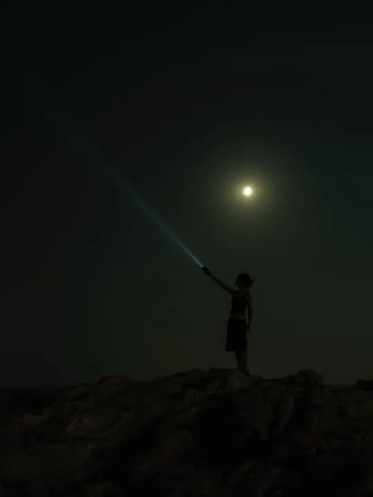 月色下,手电的光也划破了夜空 月光洒在了海面上,波光粼粼的海面反射着月光
