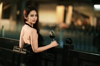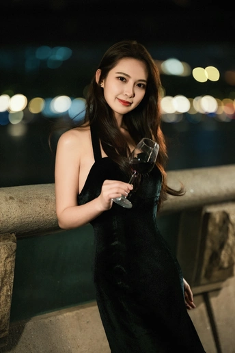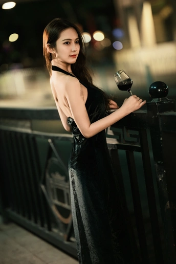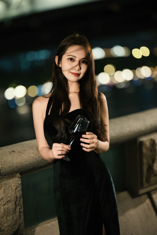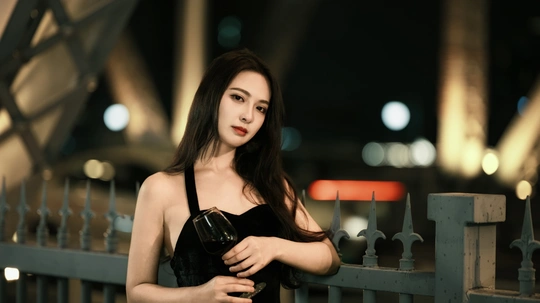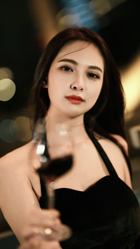 夜色漫上来时,连风都带着故事感 黑裙裁出线条,酒杯盛着微醺 发丝晃啊晃,把情绪揉进城市灯火里 每一帧,都是独属于夜晚的浪漫注脚