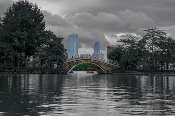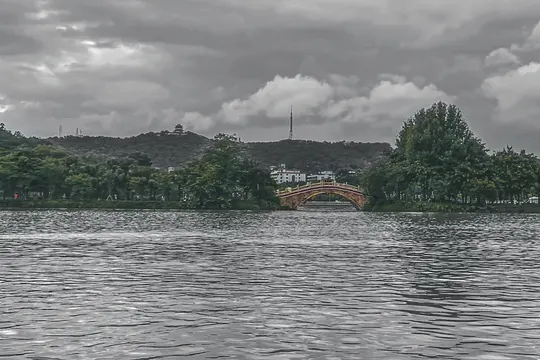 我们去到西湖的时候将雨未雨,蓝天渐小,乌云渐多,有些看起来很浓稠,有些看起来似有若无。一团一团的乌云渐渐相拥,没过多久,漫天的乌云就快连成了一片,只是有些地方颜色深一点,有些地方颜色淡一点。循湖望去,眼前的景象像是经过了晕染,山水虽非一色,却多少有种置身水墨的感觉。尽管不知道已经拍了多少次西湖,还是忍不住拍了几张照,后期做成了抽色效果,是我喜欢的感觉,像是水墨晕开了,又点上几笔水彩。