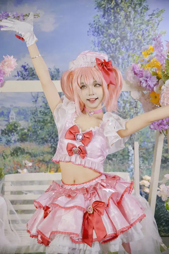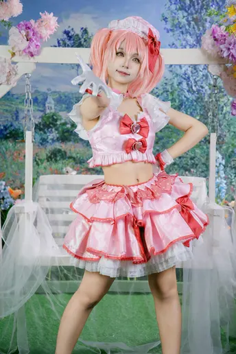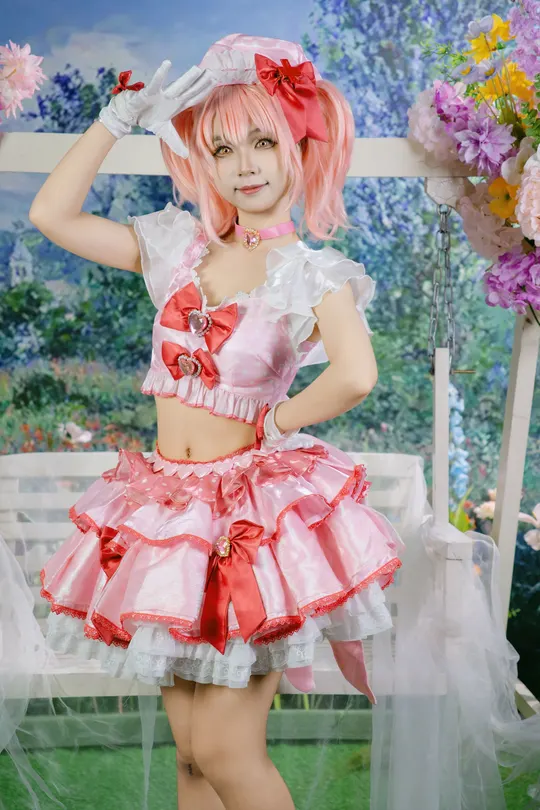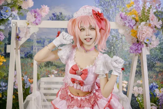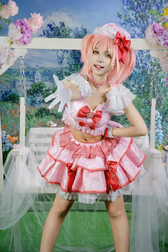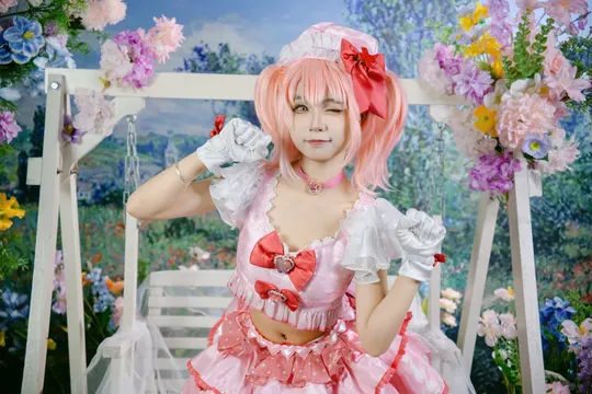 这一身粉白相间的洛丽塔风格服饰,简直不要太戳我!粉粉嫩嫩的颜色,搭配上精致的蕾丝和蝴蝶结🎀,少女感直接拉满,就像从童话里走出来的小公主👸 双马尾的粉色长发,蓬松又可爱,随着她的动作轻轻晃动,每一下都晃在我的心尖上。她的妆容也很精致,大眼萌动,笑起来的时候,嘴角弯弯的,露出甜甜的梨涡,感觉空气都变得甜丝丝的了🍬 现场的布景也很绝,白色的秋千,周围环绕着五彩斑斓的鲜花,仿佛置身于梦幻的花园之中。小姐姐在秋千上摆出各种可爱的姿势,一会儿握拳比耶,一会儿歪头浅笑,每一个动作都萌到犯规🤗好多人都被她吸引过来,纷纷举起手机拍照,我也忍不住咔咔拍了好多张,根本停不下来📸 特别鸣谢:@萤火虫动漫游戏嘉年华
