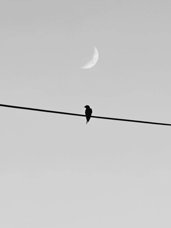 孤独的鸟儿在月下瞭望着,它会在思考什么呢?