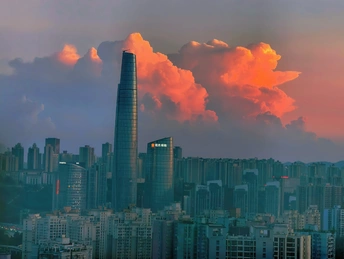 炎热的夏天,炙热难耐,晚霞时分才能出去释放一下,抬头望向天际,看到那鲜艳的一抹红旋在大楼上方,美哒哒。