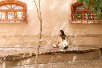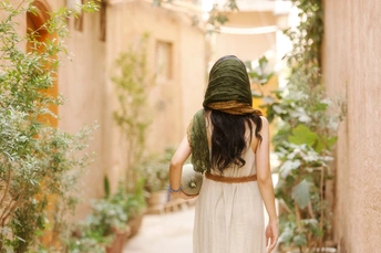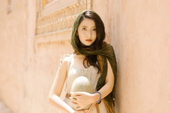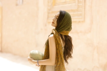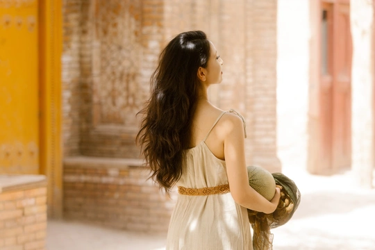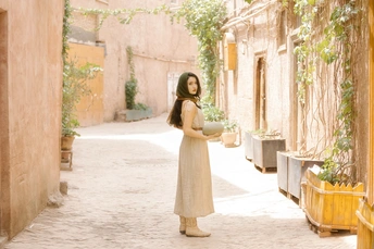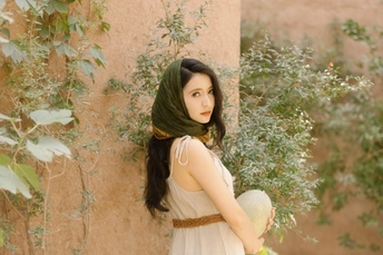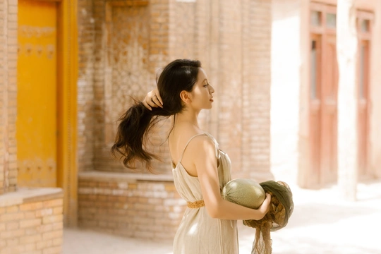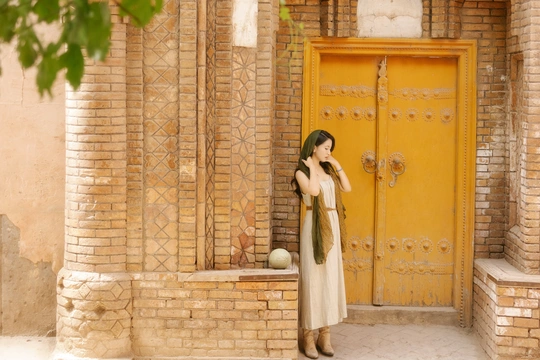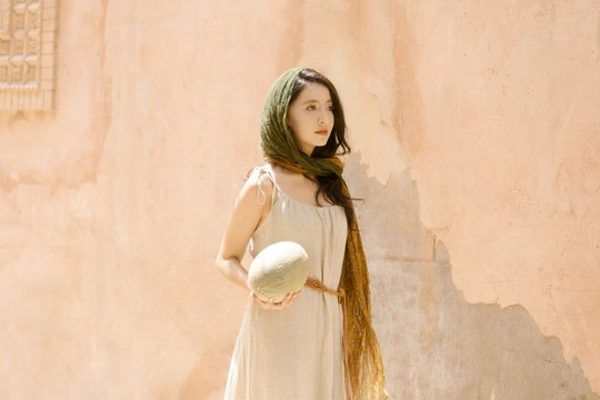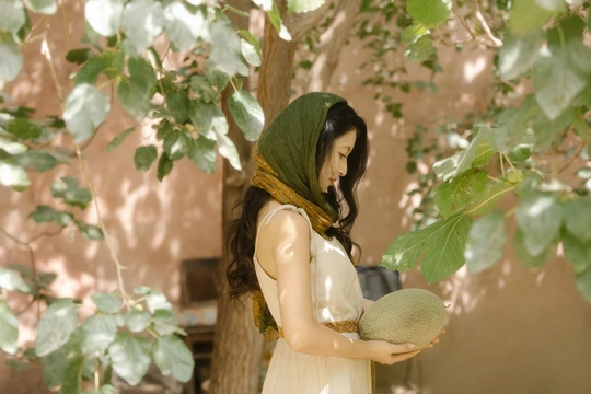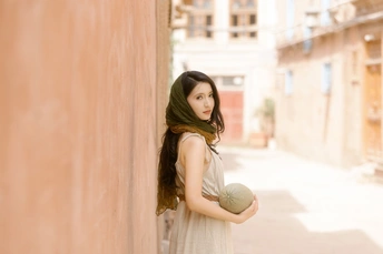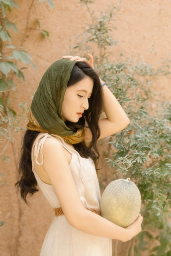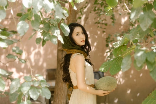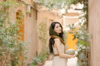 无花果的绿叶、白色的桑葚果、土色的深巷、抱着蜜瓜经过的女人,带着什么样的过往。这是关于西域的想象。 /南疆旅拍/电影感写真 微博/倩小鱼zizi