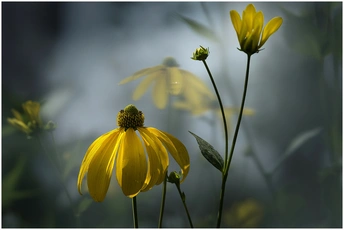 金光菊花(原创) ——————— 夏雨秋风肆意狂, 尔吹我依泛金光。 世人皆慕黄色金, 拜金世俗已猖狂。 本是自然凋落意, 哪管俗世拜金章。 心灵净土何处觅, 莫让铜臭染心房。
