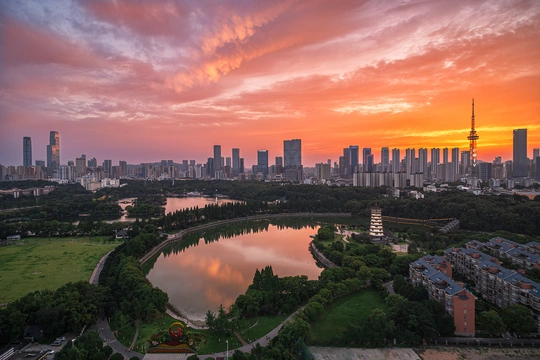 长沙烈士公园建于1951年,是为了纪念近百年来为人民解放事业献身的革命先烈。当落日时分,天空中出现最美的晚霞,霞光映射在烈士公园的湖面上,水波泛起涟漪,真的是美不胜收,仿佛也在告诉先辈们,这盛世如你们所愿。