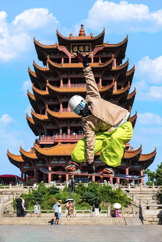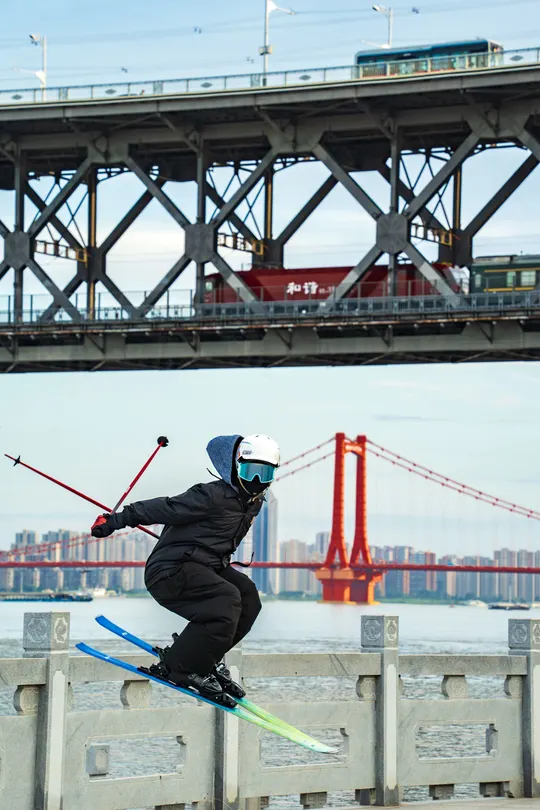 在武汉的城市脉络里,极限运动与地标碰撞出奇妙火花。黄鹤楼前,雪板承载勇气跃起;江汉关旁,身影划破时空界限;长江大桥下,雪影追随列车轨迹……以运动为笔,以地标为纸,书写古老与新潮共融、传统与活力交织的武汉故事,展现城市既怀抱历史底蕴,又奔赴自由热烈的独特灵魂。