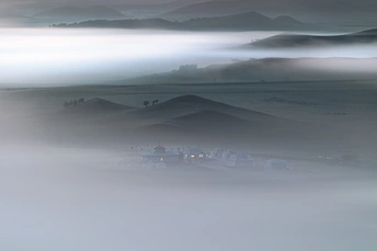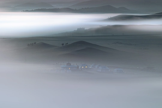 风吹动云海, 快速掠过草原。 蒙古包躲在厚厚的云里, 等待新一天的来临。 夏天的味道, 裹在草原上涌动的平流雾与绿草的清新里。 机型:Canon EOS R6 + RF 100-500mm F4.5-7.1 L IS USM 光圈:f/7.1 快门:1/3s iso:400