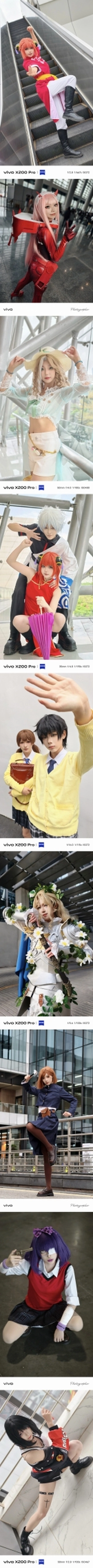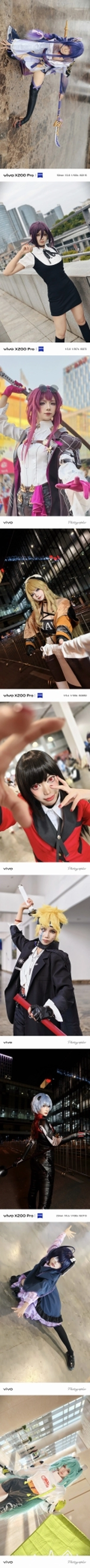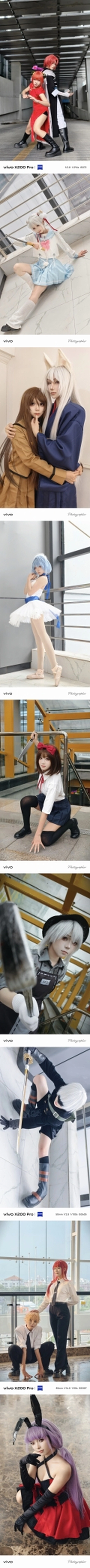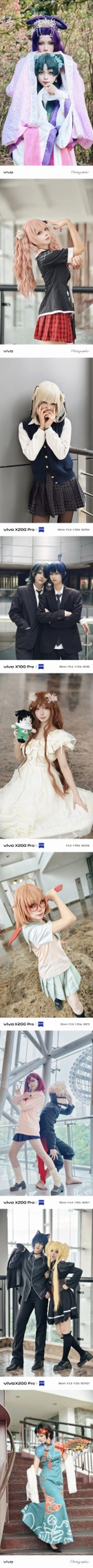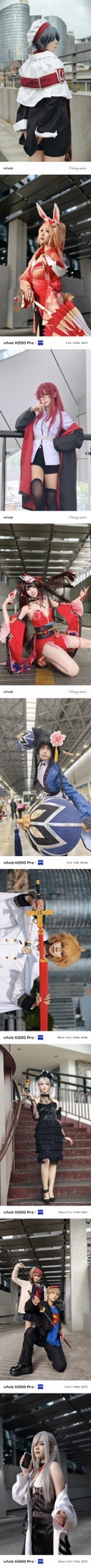 自21年七月六日开始使用vivo手机大量拍摄人像作品至今的这几年,除了在自己常驻的城市不断拍摄与积攒人像作品之外,我还陆续去了北京、广州、深圳、武汉、南昌、南宁、重庆、杭州、柳州、玉林等城市旅行与拍摄。而且不论是在自己常驻的城市,还是在自己前去旅行的这些城市,我都有前往当地的大型或中小型漫展拍摄二次元cos题材的场照,亦或者是在除了漫展以外的其它契合coser本人所cos的角色的三次元场景中拍摄二次元cos题材相关作品。 二次元cos题材的场照以及二次元cos题材的正片在我21年七月至今所拍摄的作品中占据了相当重的分量,可以说,如果撇开与不谈二次元cos题材来了解我本人21年七月至今的摄影历程和故事,那就相当于做菜没放盐。 在此精选21年七月至今本人使用vivo手机拍摄的其中108张cos题材场照和cos题材正片,希望大家都能喜欢!