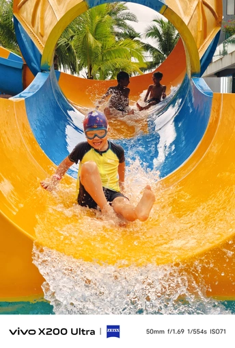 彩色的水上乐园变身孩子们的天堂!滑梯飞溅的水花里,小勇士们又怕又爱:咧嘴笑的、尖叫着冲下来的...每个瞬间都记录着最欢乐的童年。