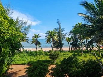 祖国大陆的最南端,广东省湛江市徐闻县白沙湾海滩 吹拂着海边咸咸的海风,一望无际的蓝天,点缀着白云,还有眼前的一片绿色景色,高大的椰树,遍地的灌木,慢走在沙滩上,感受着人与自然的和谐共生,还有生生不息的灵气