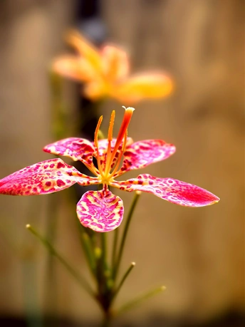 路过最美庭院时,看到庭院内错落有序的花朵中,射干花开的正盛,用手机定格花朵盛开的美景