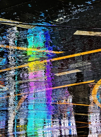 当雨水成为街头混色盘,色彩交融间,城市的喧器也变得温柔缱绻。