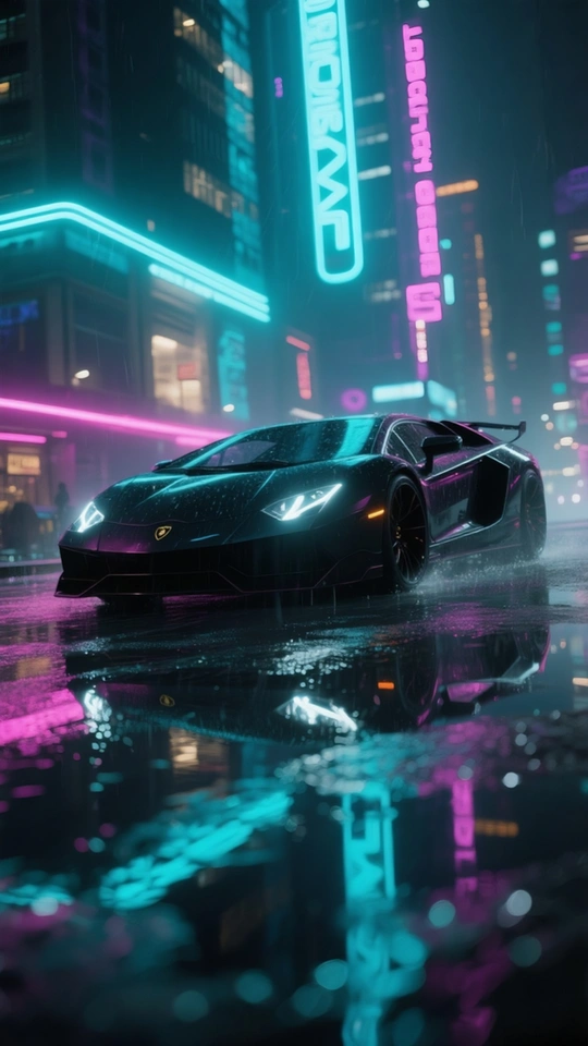 黑色兰博基尼夜间城市飙车