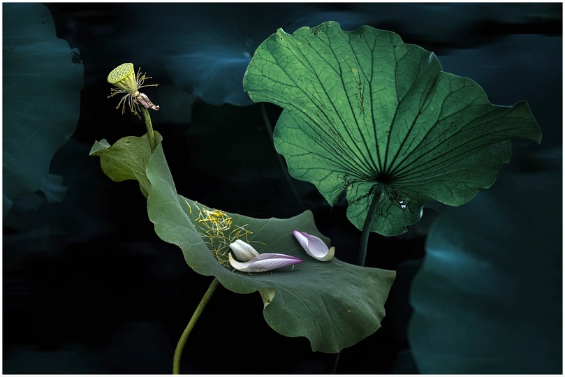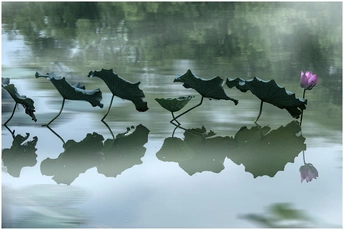 酷暑寻秋荷 ————(原创) 秋暑荷落光, 仍有叶中藏。 此时花难寻, 荷花怕天凉。 荷叶不承露, 拒接寒露霜。 池间踪迹少, 亦有韵留香。