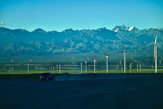 置身于新疆达坂城的风车森林🌪️ 白色巨人随风起舞 每一度清洁电力的背后,都是自然与科技的浪漫共舞 绿色能源 #风的力量 #达坂城打卡