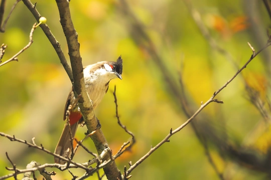 阳光透过枝叶,给红耳鹎镀上一层柔光。它立在枝头,羽冠俏皮翘起,红耳点缀灵动,似在聆听风与叶的私语,把自然的诗意,悄悄藏进这帧鲜活画面里 。