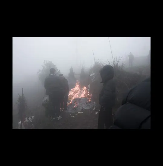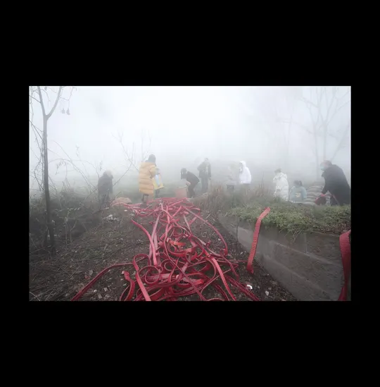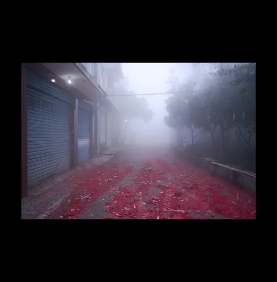 川渝一带,除夕前后或者大年初一,一家老少大多会在长辈的带领下,带上香烛纸炮,前往已故老人的墓地坟前进行祭拜,这一习俗从古延续至今。本组图拍摄的内容是2022年至2024年的大年初一,我的大家庭上坟家祭。在我的家乡,已经连续好几年大年初一大雾弥漫,家门前满地的火炮纸、大雾朦胧中发呆的行人更使得这一段段回忆梦境化,后知后觉的,就像是一场梦,一场热闹的梦。