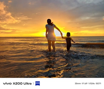 一场大雨后,海边竟然出现夕阳与火烧云,这个惊喜让妈妈与孩子激动不已,牵手奔向大海,向着太阳的方向。