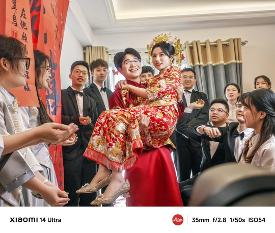 公主抱的瞬间,空气都冒出粉红泡泡~亲友围坐,笑语满堂,连红联都写着“天作之合”!