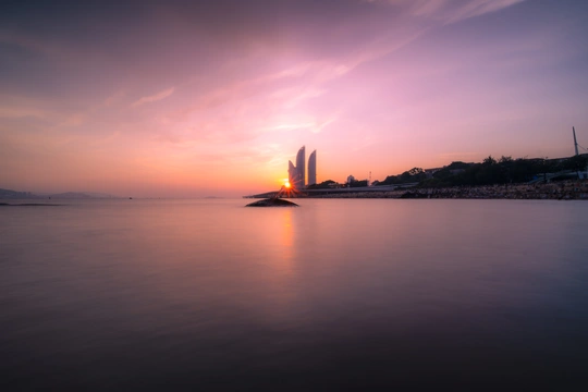 夕阳下的厦门海滨,美得像一场温柔的梦。天空被晕染成粉紫渐变的画布,太阳似个橘红的光球,挨着双子塔缓缓下沉,金光从建筑间迸射,给海面镀上粼粼暖芒。海浪轻轻拍打着岸边,远处的小岛若隐若现,岸边人群或静赏,或低语,与这梦幻景致相融,每一帧都写满了浪漫与惬意。