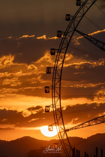 夕阳的光洒在摩天轮的每一格座舱,像给幸福镀上一层金。慢慢旋转的不仅是摩天轮,还有一天的温柔与回忆。此刻,城市安静下来,只剩光与影在诉说浪漫