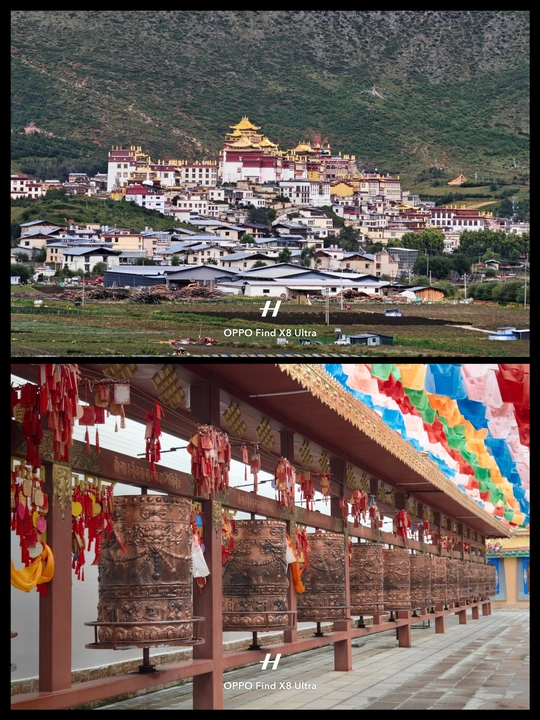 经幡被风揉成彩色漩涡,每一缕都像藏着高原的心跳;小牦牛在水洼边晃悠,鼻尖蹭过指尖时,仿佛把草原的温柔都递了过来。 在香格里拉,松赞林寺的金顶在山间熠熠生辉,转经筒悠悠转动,似在低语岁月的虔诚;金沙江大湾如大地甩出的丝带,在群山间蜿蜒出震撼曲线。 白塔在蓝天云影下闪着金辉,像从时光里走来的圣物。和你并肩望着群山连绵,风掠过耳畔,好像把所有的喧嚣都吹远了。 📱:OPPO Find X8 Ultra