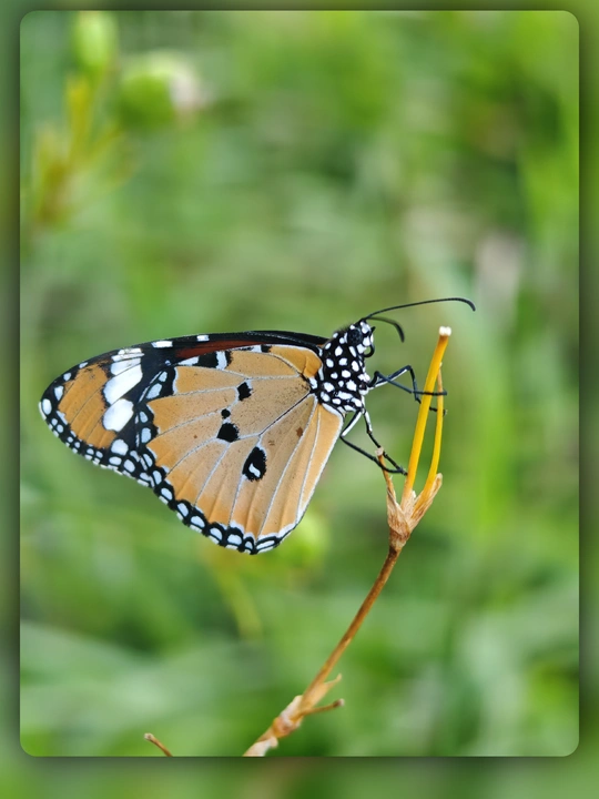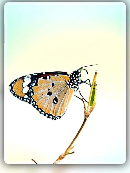 蝴蝶栖于纤细枝茎,翅膀似被精心晕染,斑斓又灵动。在自然里,每一处小角落都藏着这般诗意小景。
