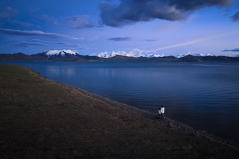 拍摄于普莫雍错,蓝调时刻尚未褪去的光线照映在雪山上,湖畔与雪山形成一幅静谧的画卷。