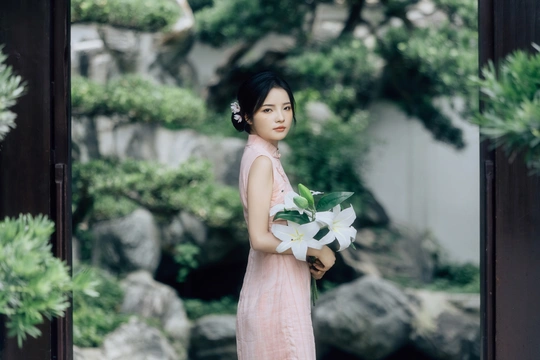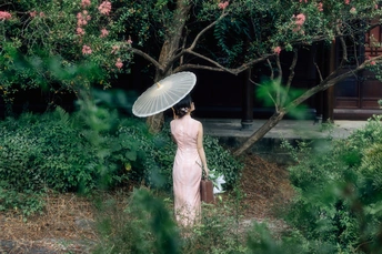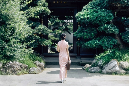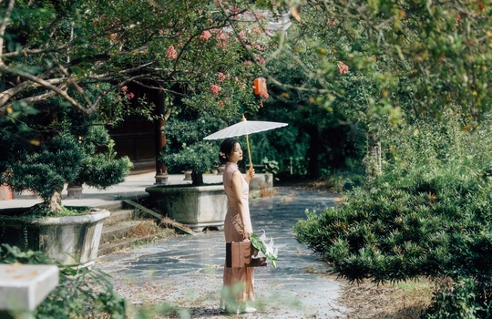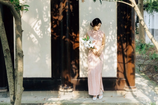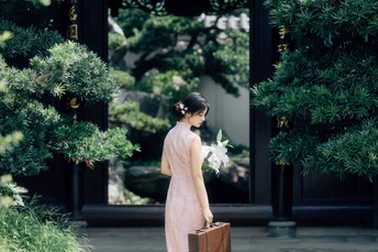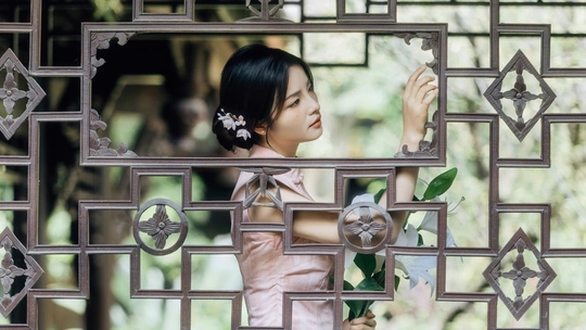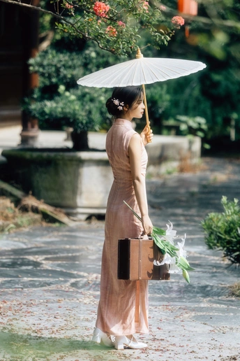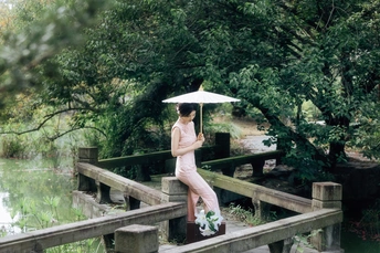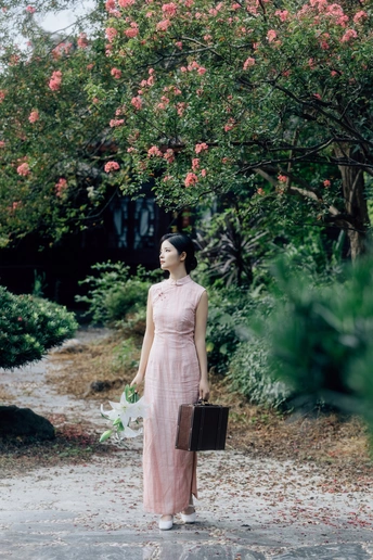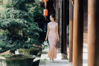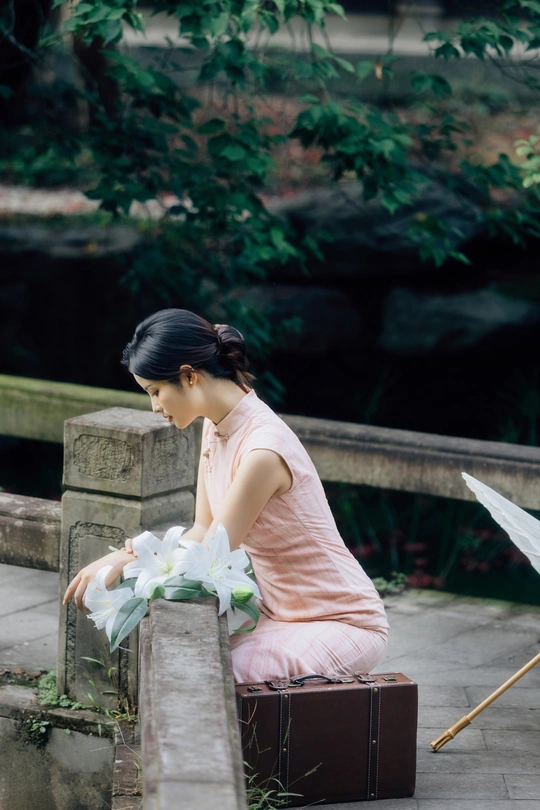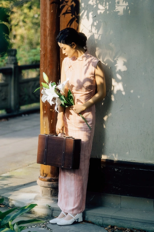 庭梧旧影,致书于君: 庭中花径未扫,廊下蛛网悬尘。我在塘边白石上坐了许久,听得风吹过破败门窗的呜咽声,恍惚间竟以为是你的脚步声,回头却只见几片枯叶打着旋儿。 读你的最后一封来信。信里说,待山河无恙,必快马踏月归,为你簪上海棠红。今年是海棠红的第三年。 /电影感写真 📷:倩小鱼 (一场照片的创作过程,往往是从亲自踩点开始的。也是和客人朋友短短的默契配合。因为绝对的信任,一起拍下了这场代表旗袍的情感叙事写真!)