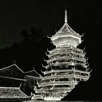 #侗寨鼓楼#,全#杉木# #榫铆#结构,不用#图纸#,不用#钉子#,#尺子#都不要,#工匠#只要一根#竹竿#作为#丈量# #工具#。层数仅为单,最高十三层……