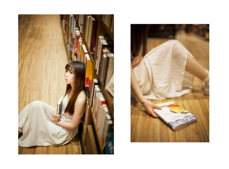 媚夕拾 摄影及后期:花满楼 #人像# #花满楼摄影# #书店# #文艺#