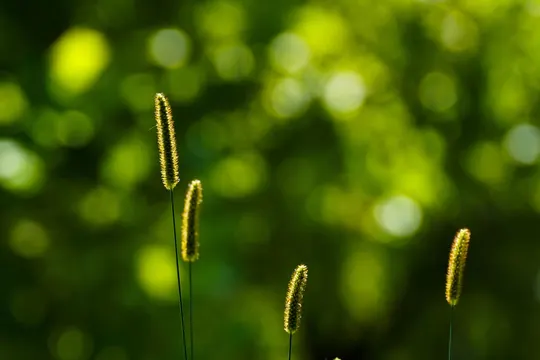 在绿意盎然的草丛里,几株狗尾草挺立着。阳光洒落,给它们毛茸茸的穗子镀上一层柔和的光边。微风拂过,狗尾草轻轻摇曳,似在与风私语,那模样,透着自然的清新与灵动,让人心头也漾起一阵惬意。