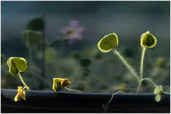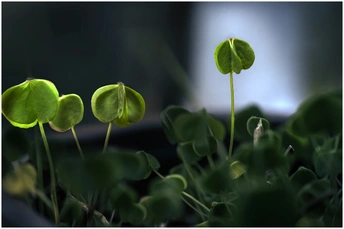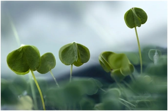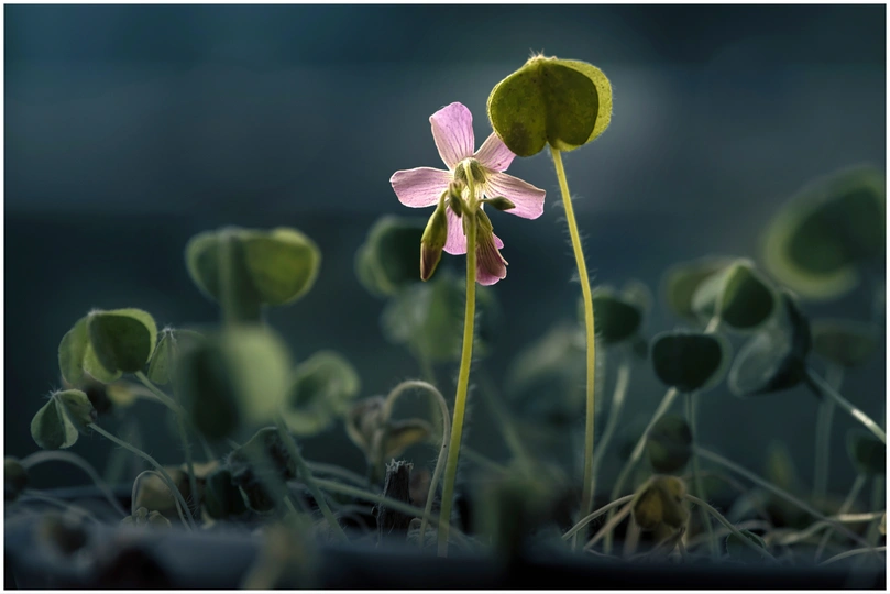 小小苜蓿草花 ————(原创) 小花数叶光中影, 不同角度不同型。 你望它时它不语, 风吹点头它似宁。 数叶起舞光中行, 侧看如仙幻影婷。 小小枝叶立玄穹, 月儿圆赤它不红。