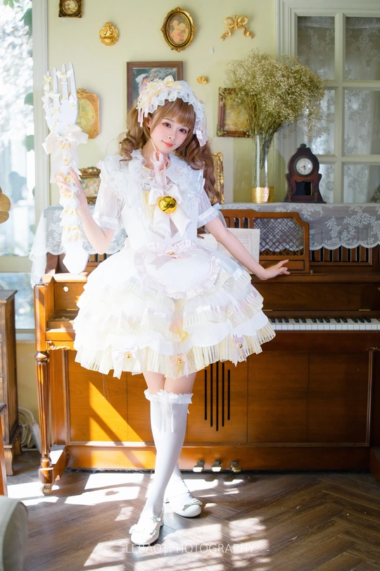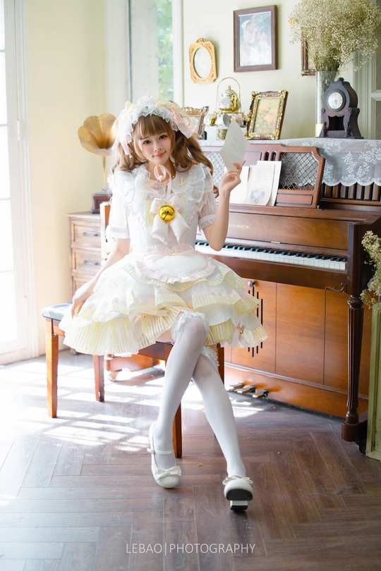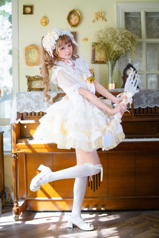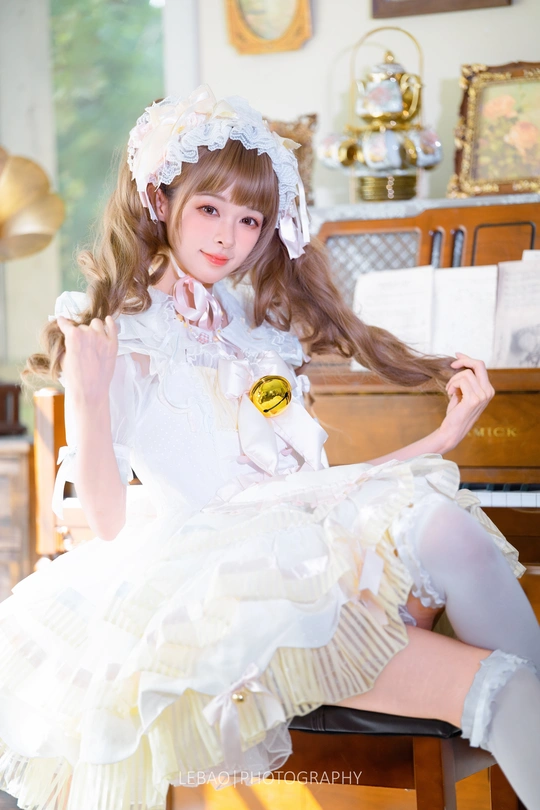 在松江的别墅区里,我邂逅了这样一位小可爱。她身着洛丽塔裙装,裙子以柔和的白与浅黄为主色调,层层叠叠的裙摆如绽放的花,精致的蕾丝、可爱的蝴蝶结与亮眼的金色铃铛点缀其间,尽显甜美梦幻。她有着一头卷曲的长发,蓬松又灵动。拍摄时,她特别会摆动作,或俏皮抬手,或优雅持物,姿态百变又自然,整个人像小精灵般活泼可爱,让我一下午的拍摄心情都无比愉悦。
