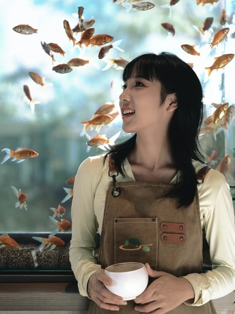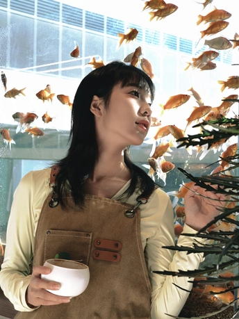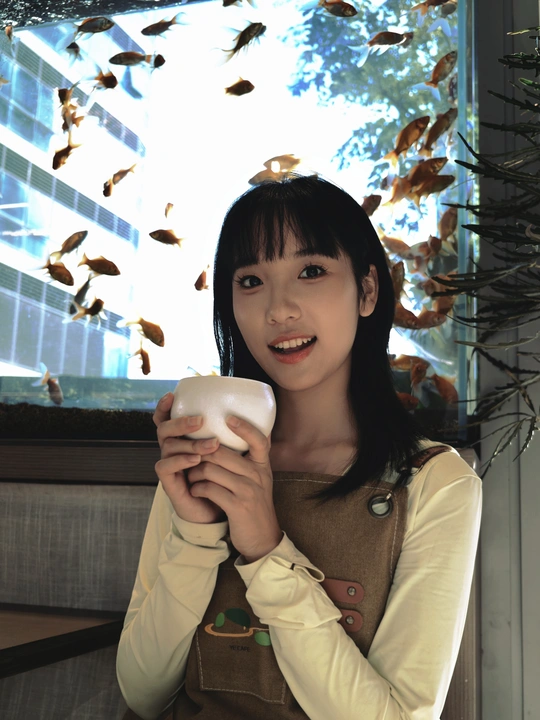 在YE CAFE(番禺天河城店)的光影里,偶遇与金鱼共梦的女孩。玻璃外是游弋的斑斓,玻璃内是她恬静的模样,咖啡的醇香混着鱼儿的灵动,仿佛闯入一场现实与梦幻交织的浪漫章节。