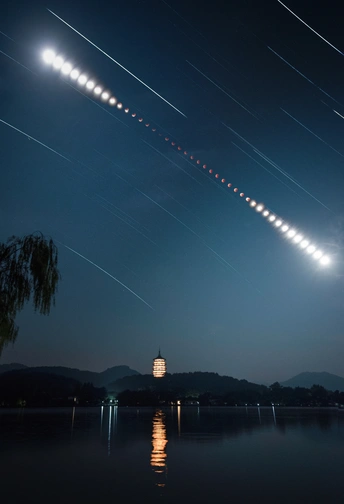 所有的月全食处理终于完成了,电脑卡死多次哭,包括特写与广角序列,全是高清大片 P1 月全食与地球本影圈,讲述月全食是怎么形成的,可以清楚看到月亮被遮挡的地方 P2 星与月共舞,广角月全食序列与雷峰塔的合照 P3 月全食宇宙钟,月全食的完整变化 P4–p6 月全食与红月特写,单张拍摄,细节是不是超棒? 设备:尼康z8+腾龙150-600g2 尼康d750+腾龙15-30 晴空ST17谐波赤道仪