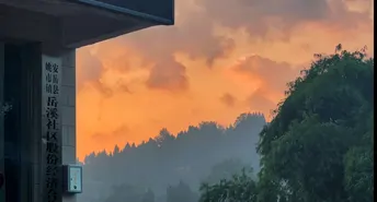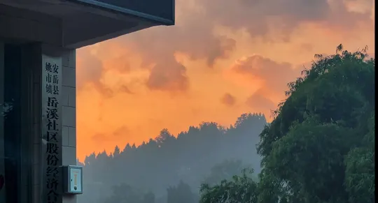 第一幅图中,石窟造像古朴庄严,在绿树掩映下更显历史厚重感,仿佛时光在此凝固。第二幅图里,晚霞如打翻的调色盘,将天空晕染成暖橙色调,远山、林木在暮色中朦胧如诗,一古一今,一静一柔,皆是动人美景。