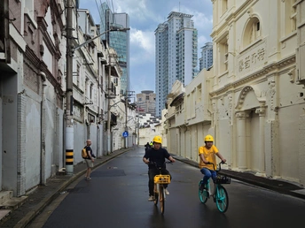 上海的方浜中路,等待拆迁很多年,残楼后的新建筑拔地而起。