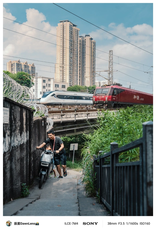 车轮滚滚,时光匆匆,旧巷与新轨交织成诗。生活如这交错的瞬间,平凡中藏着动人的故事。