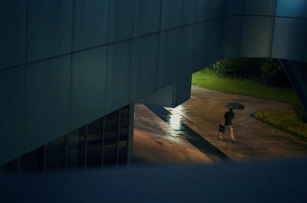 雨夜一个人撑着伞走在城市中