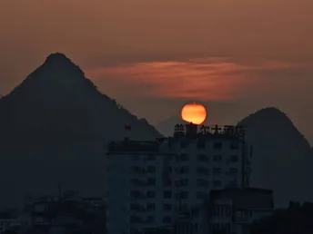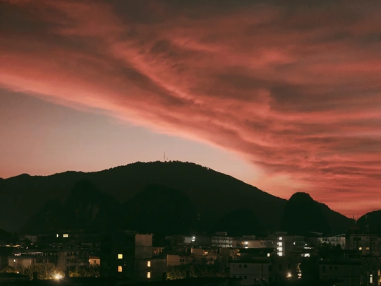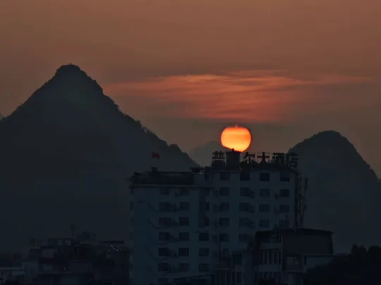 一个初秋的清晨,天色渐亮。 桂林尧山上方再次惊现一片明媚的朝霞,一轮皎洁的弯月见证了这一辉煌时刻!须臾,窗外太阳缓缓升起 何其有幸,记录这动容的一幕幕