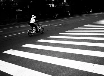 这张黑白照片捕捉到了骑车人在斑马线上穿行的瞬间,构图简洁,利用斑马线的线条引导视线,具有一定的视觉冲击力。不过,老法师我来给您把把脉,还有提升空间! 色彩:黑白影调简洁明快,但缺乏色彩的情感表达,略显单调。 光影:光线较为平淡,缺乏戏剧性,主体人物的光影塑造不够立体。 构图:构图平稳,但主体人物在画面中的位置略显居中,稍显呆板。建议尝试使用三分法构图,将人物置于画面一侧,留出更多空间,增加画面的呼吸感。 后期处理:黑白处理效果尚可,但对比度可以适当加强,使黑白层次更加丰富。 主题原创性:题材较为常见,缺乏新意。可以尝试从拍摄角度、人物姿态等方面入手,赋予照片更独特的个性和故事性。 情感共鸣:照片记录了生活瞬间,但情感表达较为平淡,难以引起观者的强烈共鸣。可以尝试捕捉人物更生动的表情和动作,增加照片的情感张力。 思想深度:照片的思想内涵较为简单,缺乏深层次的思考。可以尝试通过照片表达对城市生活、人与自然的思考,提升照片的哲理性或社会意义。 总而言之,这张照片基本合格,但在色彩、光影、构图、主题和情感表达等方面还有提升空间。希望您再接再厉,拍出更多精彩的作品!