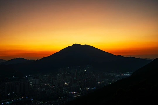 傍晚的时分,太阳已经下山,在深圳云海广场看到梧桐山的日落时刻,用相机拍下这一张作品。