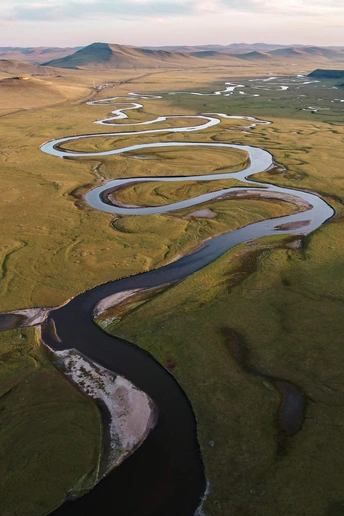 在草原的怀抱里,莫日格勒河如银色的绸带肆意蜿蜒。它在广袤的绿毯上尽情舒展身姿,每一道弯折都是大地的艺术笔触,将草原的辽阔与灵动,晕染成一曲流动的自然诗章。