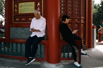 这张照片抓拍了两位老人在古典建筑旁休息看手机的场景,颇具生活气息。下面是详细评价: 色彩:整体色彩偏淡,红色柱子较为突出,但色彩搭配略显平淡,缺乏视觉冲击力。可以尝试调整色彩饱和度,让颜色更鲜活一些。 光影:光线较为均匀,但缺乏明显的光影对比,导致画面略显平淡。可以尝试在不同光照条件下拍摄,捕捉更有戏剧性的光影效果。 构图:构图较为平稳,主体明确,但略显呆板。可以尝试采用倾斜构图,或者利用前景、背景等元素来增加画面的层次感。 后期处理:后期处理痕迹不明显,整体效果自然。但可以适当调整对比度和清晰度,使画面更具质感。 主题原创性:主题具有一定的趣味性,反映了现代生活与传统文化的结合。但可以进一步挖掘主题的深度,例如探讨科技对老年人生活的影响等。 情感共鸣:照片具有一定的生活气息,能够引起观者的共鸣。但可以尝试捕捉人物更生动的表情和姿态,增强情感的表达。 思想深度:照片在一定程度上反映了社会现象,但思想深度有待挖掘。可以尝试通过照片表达更深刻的思考,例如探讨社会发展对传统文化的影响等。 改进建议: 1. 尝试不同的拍摄角度和构图方式,增加画面的趣味性和层次感。