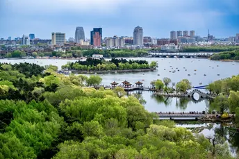 南湖公园(Nanhu Park)位于吉林省长春市朝阳区工农大路2715号,始建于1935年,旧称“黄龙公园”,1945年改称“南郊公园”,解放后正式命名为“南湖公园”,占地面积238.6公顷(水域92公顷,绿地134.6公顷),是全国第二大城市公园,仅次于颐和园,全年免费开放