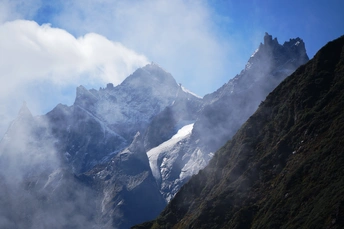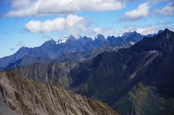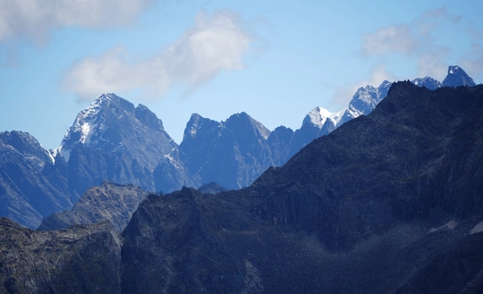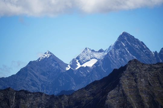 理小路十瀑海子上长戈峰山脊风光:遥望霸王山、龙脊峰、大黄峰、魔戒峰、杨柳坪大雪山等