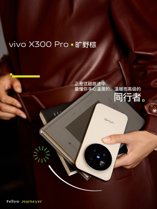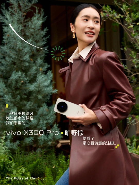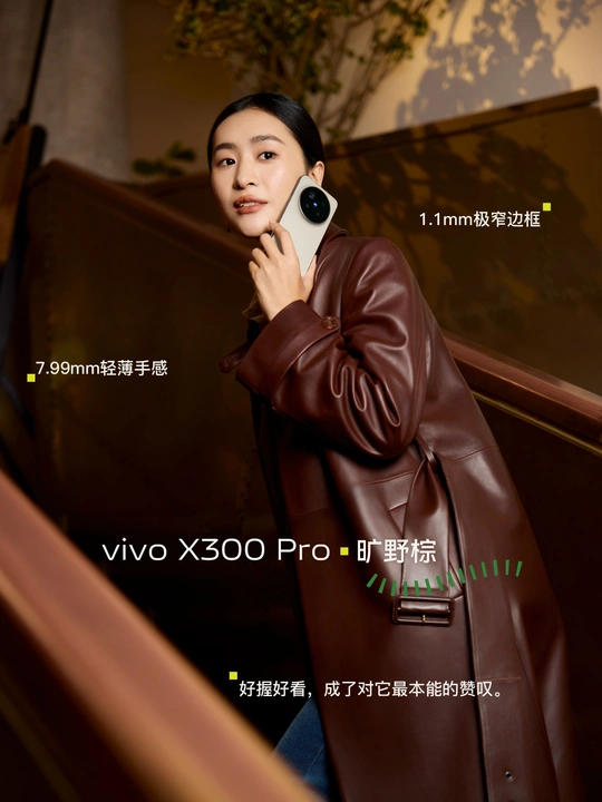 秋日都市里,一手可握的温润暖意,旷野的意义,可以是走出去的浪漫,也可以是当下咖啡馆里,一抹阳光的午后时光。 当秋日美拉德风吹过都市的脉络,我们手里的vivo X300 Pro 「旷野棕」,便成了掌心最诗意的注脚。指尖划过,是仿佛抚过云朵的圆润,是丝绒玻璃的肌肤对话。 6.78英寸直屏设计、7.99mm超薄手感以及1.1mm极窄四等边框,好握好看,成了对它最本能的赞叹——每一次拿起,都像一次温柔的握手,提醒你在奔赴旷野的征途中,亦能保有触碰当下的安心与温暖。 光影流转,在其背壳上如丝绸般流动,勾勒出都市里高级的「呼吸感」。 点亮屏幕OriginOS 6独有的个性化锁屏,也是对当下生活态度的宣扬! 美,当然不只外在!透过它的镜头,影像便是它探索世界的另一条轨道——巨出片,将每一刻浪漫的邂逅,定格下媲美大片的时刻。 人生不是轨道,是可以没有终点的旷野。 而vivo X300 Pro 「旷野棕」,正是这趟旅途中最懂你手心温度的、温暖而高级的同行者。